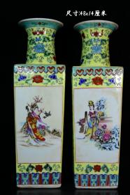 旧藏大清乾隆年制珐琅彩人物四方瓶一对