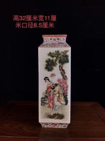 清乾隆五彩人物故事四方瓶、器型周正、画功精细、、人物形象逼真、、品相极佳