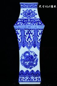 旧藏大清乾隆年制青花四方瓶,造型独特,青花发色纯正,画工精细,纯手绘画工,品相完美如图