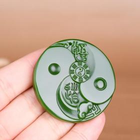 和田碧玉悟道如意八卦吊坠如意太极八卦阴阳五行碧玉挂件项链玉牌
