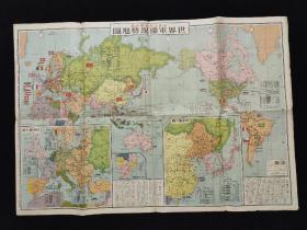民国原版 1938年《世界军备现势地图》二次世界大战欧洲形势 英法德意苏美日中陆海军兵力数据 远东形势图 双面印《支那事变经过画报》 济南市街鸟瞰 南京新市街中央广场 太原入城