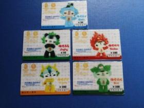 北京2008年奥运会吉祥物 五福娃 纪念移动手机充值卡 5张