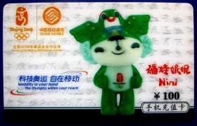 奥运吉祥物-福娃妮妮立体塑料卡100元(中国移动)--早期IP卡、手机卡等甩卖--实拍,