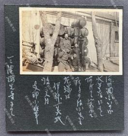 1932年伪满洲国哈尔滨特别市市长,伪满洲驻东京大使鲍观澄和妻子抵达满洲国驻日本临时使馆---东京万平酒店,两人手持伪满国旗,鲍妻满脸狐疑,汉奸故作审定,一切都显得氛围很诡异。20.3X15.3厘米