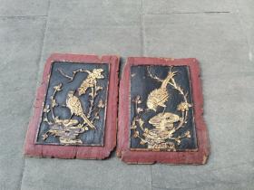 清代木雕四片,