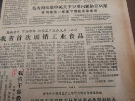 英内阁批准中英关于香港问题协议草案,并同意这一草案下周在北京草签!我省首次展销工业食品!这次展销会展出的产品有董酒习水大曲,鸭溪窖酒等中等名酒!《贵州日报》