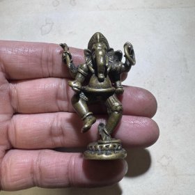 泰国象神铜象鼻财神 东南亚风格工艺品摆件收藏手把件 迷你版