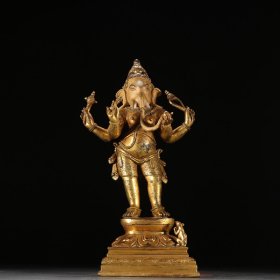 铜鎏金象鼻财神造像