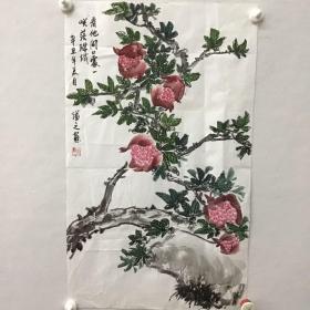 沪上画家李帆国画一张:看它开口处,一笑落珠玑(48X89)CM【保真】