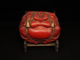红色彩墨,弥勒佛笑容满面,开口常笑。