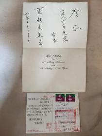 日本国驻沈阳总领事馆经济处:实寄明信片( 实寄给阜新市人民政府市长助理张本刚, 并盖有两枚大印章如图) 附赠1986年日本贺卡一张如图,具有收藏价值。