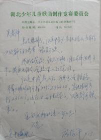 【佟文西旧藏】大连音协副主席、大连儿童音乐学会会长,著名儿童歌曲词曲作家晶日信札(大连旅顺光荣小学笺)