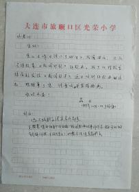 【佟文西旧藏】大连市音协副主席、大连儿童音乐学会会长,著名儿童歌曲词曲作家晶日信札(大连旅顺光荣小学笺)