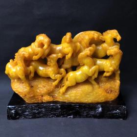 寿山石田黄八俊马摆件