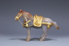 辽金 老玛瑙包铜鎏金俊马摆件