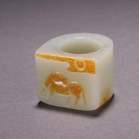 清代 和田玉籽料俊马纹扳指。