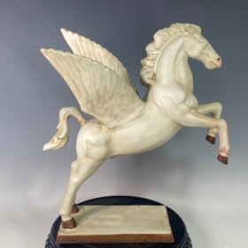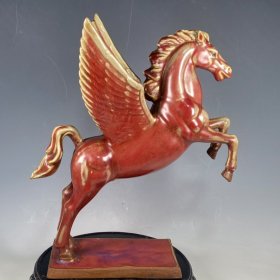 收藏品!宋官窑钧瓷窑变《飞马奔腾》俊马摆件:此造型美观大方,手工制作,做工精细,生动逼真,活龙活现,胎质细腻光滑,老味十足,自然磨损,极其少有。值得收藏。尺寸33x27厘米、