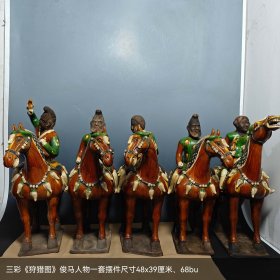 三彩《狩猎图》俊马人物一套