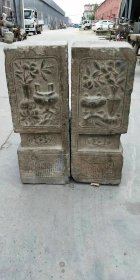 前清,青石雕刻石门挡一对,高浮雕俊马,香炉,雕刻精细 包浆浑厚完整无损高63公分,长52公分,宽24公分,全品保老