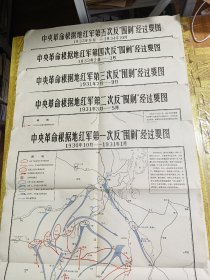 地图 第一次至第五次反“围剿”战役经过图 五张全 第一次反“围剿”的地图较小(33.7cmx27.5cm); 其余的都是大它二倍左右(49cmx41.8cm); 品佳