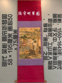 吴彬,1550~1643年,明代晚期,字文中,福建莆田人,职业画家,工山水人物画,享有“画仙”之誉。明代 吴彬手绘绢本画, 隔帘听琴图 58×195厘米 画心50×75厘米,值得收藏,喜欢的联系。92