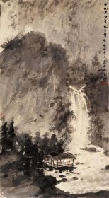 13800图书画页印刷品 傅抱石 《 松阁观瀑图 》12.8X23.3厘米 共1页