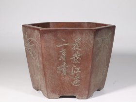 青花山水诗文老花盆一个,拆迁农村收来的,种花做盆景都可以,边上有个自然的小孔,不影响使用,标价就是卖价,喜欢的朋友可以直接拍,包邮(放FF箱中)