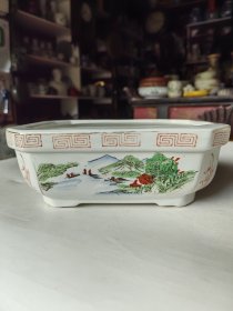 567手绘山水人物水仙盆,早期老花盆,尺寸大,还很新,包老保真,釉面圆润,画派好,立体层次感强,意境高雅,古韵味,长宽高22*17.8*8.5厘米,全品完整,可收藏、使用等。