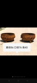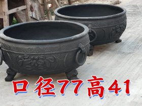 清代 铸铁 大缸一对 虎头腿 兽头环 高浮雕 花卉 用料厚重 全品包老 可做 鱼缸 花盆 古村落 民俗园 影视道具 首选 单个尺寸 直径86 口径76 高40 重600斤左右一对