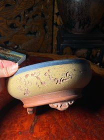 567精品创汇期70年代平定紫砂花盆树桩随形雕塑梅花篆书万栽寿山陶艺盆栽用具器形优美古朴典雅怀旧民俗老物件家居会所民宿陈列影视剧道具