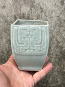 旧藏.精品.老紫砂手工雕刻花鸟文字四方花盆