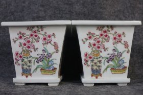 瓷器,老窑瓷,同治粉彩博古花卉纹花盆缸一对 宽12.6厘米高11.7厘米 编号91500k661588,