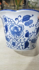 手绘老瓷花盆,高12口径20,葵口