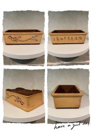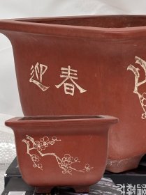 紫泥四方飘口刻绘 - 紫砂老花盆