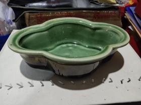 216_民国绿釉老花盆一个 包浆浓厚