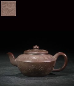诗文南瓜紫砂壶 款识:葛子厚 清代 高 8.8×15.2cm 容量约280cc