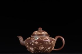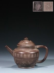 【古珍玩藏】.【历代壶艺】 【泥绘纹执壶】【葛子厚】 【尺寸】长15.8cm,宽9.8cm,高10.6cm 【简述】葛子厚,清嘉庆时宜兴制壶高手,生卒年月不详。《阳羡砂壶图考》云:“子厚,嘉庆间人,缪颂宜兴,子厚为造壶。”