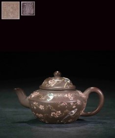 葛子厚款 紫砂彩绘喜鹊登梅茶壶