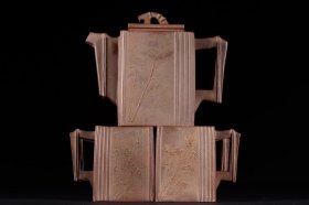 【古珍玩藏】.【历代壶艺】 【泥绘纹套壶】【葛子厚】 【尺寸】壶长15cm,宽9.2cm,高10cm ,杯子长8.2cm,宽6cm,高5.2cm