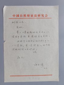 张永谦(1934,中国科学与科技研究会秘书长,哲学家) 致柳树滋 信札.信函.一页