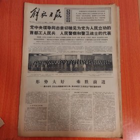 解放日报1976年4月27日(4开四版) 党中央领导同志亲切接见为党为人民立功的首都工人民兵人民警察和警卫战士的代表。 形势大好乘胜前进。 用毛泽东思想占领一切舆论阵地。 加强意识形态领域的无产阶级专政。