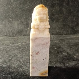 巴林石10.4*2.6*2.6cm,1803号鸡血石雕头印章,灵度高纯天然,总计13个小鸡血点,歇业甩货价,编号1803库3。