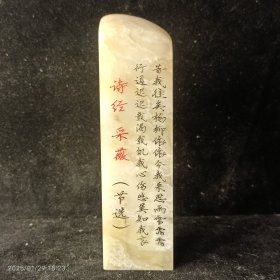 巴林石11.4*2.5*2.5cm,1900号红黄花印章,品种石,有一条生长线,灵度高纯天然,清仓甩货价,中国西大名石之一,内蒙古赤峰市区发货,千无编号1900棚7。