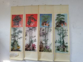 九十年代老年画(三友图)四条屏 天津杨柳青画社