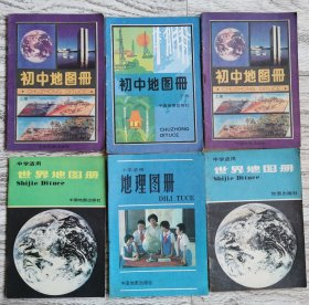 八九十年代初中小学地理图册6本合售