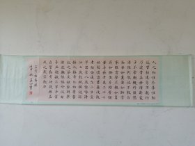 李荣玉,中国著名书法家,画心尺寸137×32厘米,从师于著名书法家刘炳森。九十年代原裱立轴手绘作品,图片与实物一致