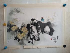 约八九十年代,手绘水墨花鸟画一副 横幅镜心旧裱,作者不识 画心尺寸66x44厘米 包真包手绘