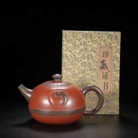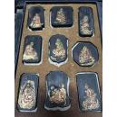 老徽墨【伏虎罗汉】朱砂摆件墨 大清光绪年制 墨汁光洁细腻 墨质坚如玉石 鎏金浮雕诗词铭文 朱红款识品如图 雅士骚客文房收藏佳品 重约235克 尺寸10.7×9.7×1.2厘米