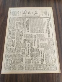 解放日报1950年4月28日(裁边伤字)庆祝五一劳动节口号,协商委会首次会议,石室街,福建闽侯,学联召开学生会三次代表会,陕西洛川,陈穆,刘靖基,舒新城,孙福熙,许杰,惠根宝,颜耀秋,倪复生