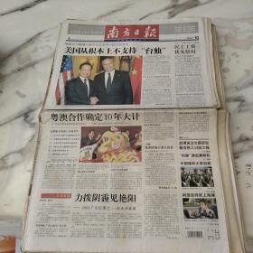 南方日报。2003年12月10日。四开24版。美国从根本上不支持台独。粤澳合作确定十年大计。三省三年解决拖欠工程款民工工资优先偿付违规企业将被曝光,未还清欠款不得上新项目。立白饮埋件艳阳2003广州纪事之二(抗击非典)。柯受良猝死上海滩。